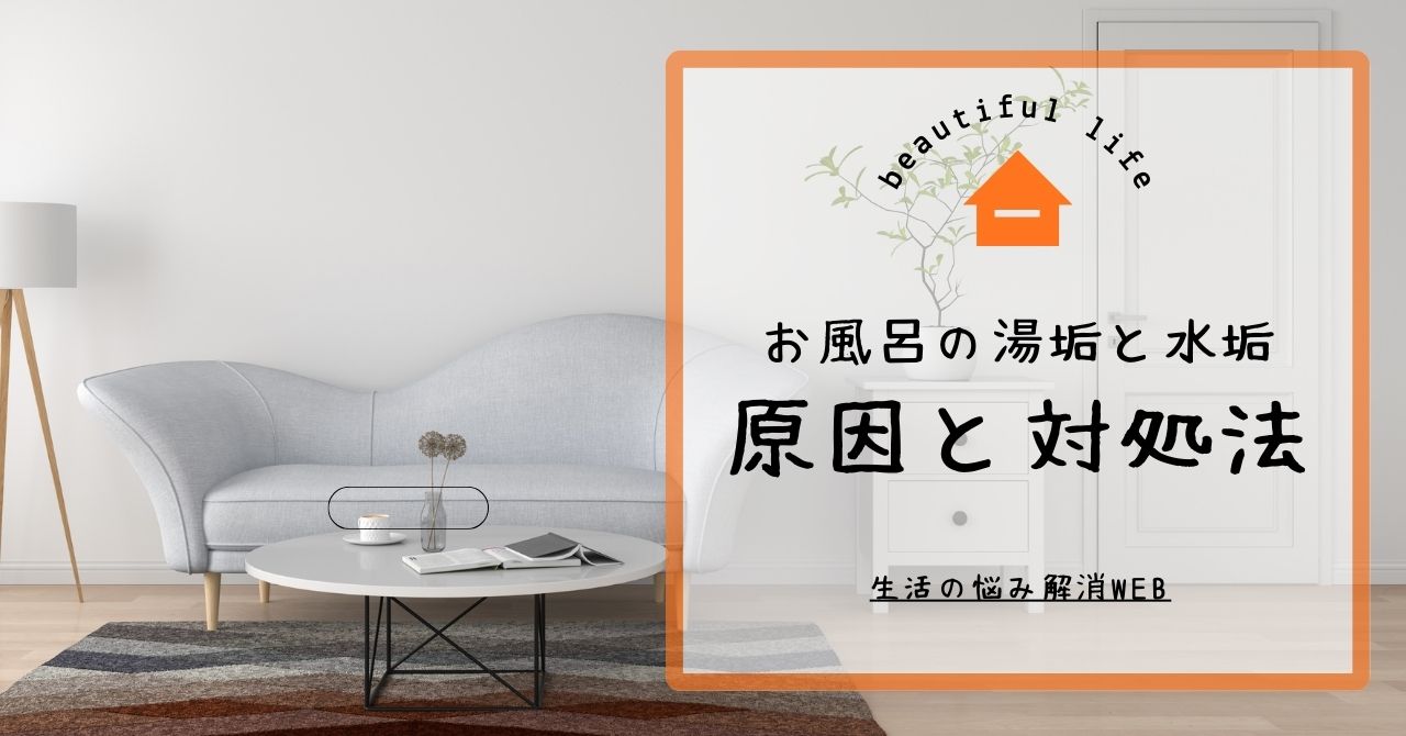 - 原因:湯垢(皮脂・石けん)/水垢(ミネラル)/石けんカス(複合)